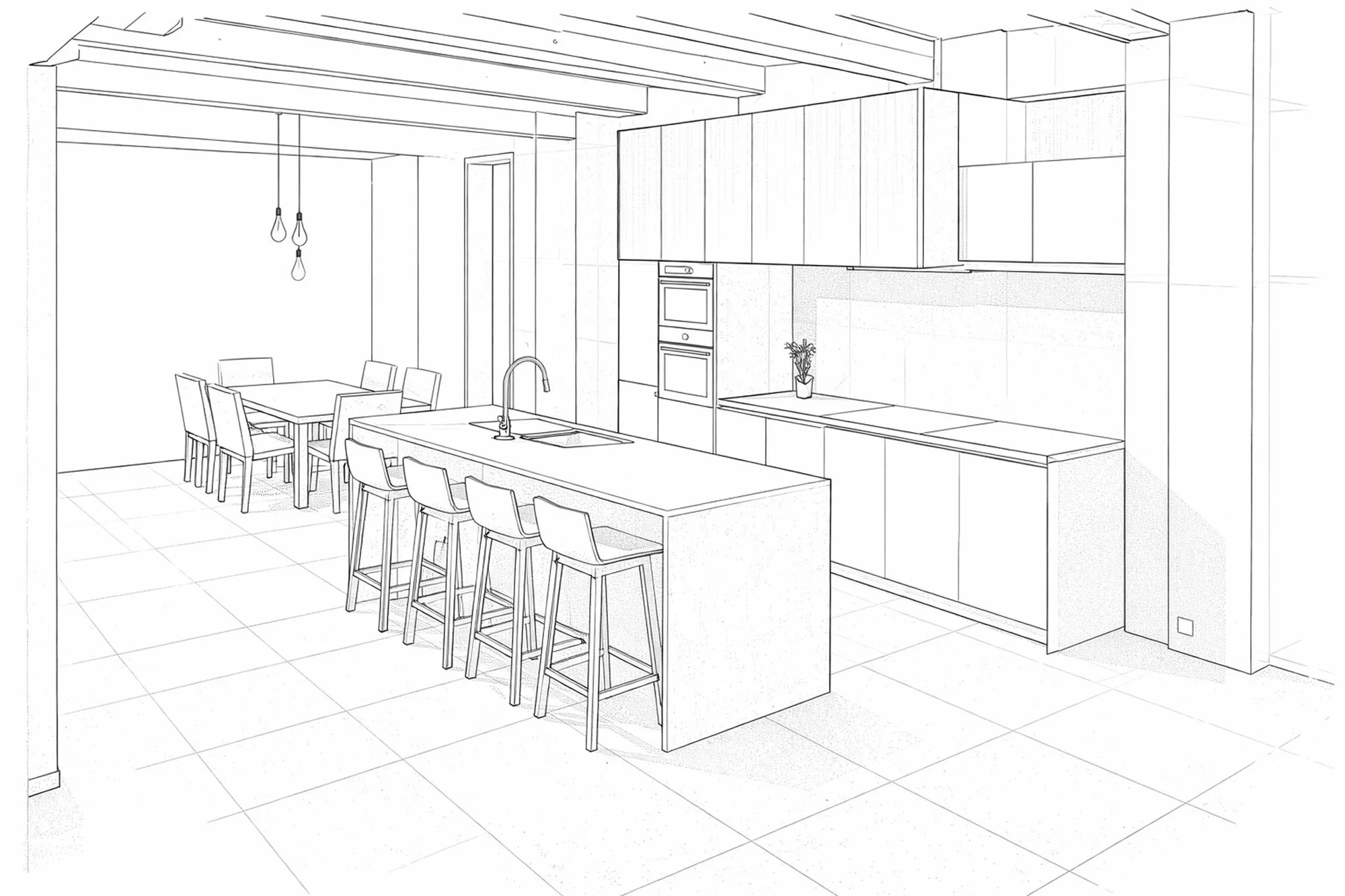 Property marketing rendersThe ProcessOur intervention focused on spatial optimization and technical integration. Houses of character often suffer from fragmented layouts and poor natural light; so we redesigned the internal flow to create open, airy living spaces that connect seamlessly with the central courtyard.