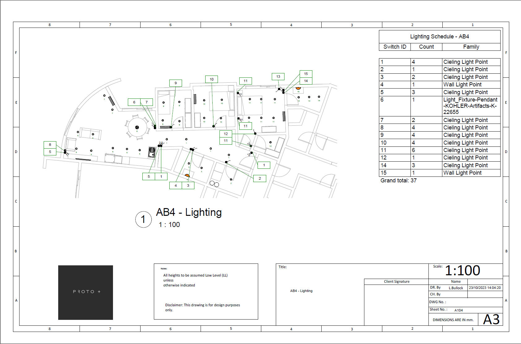 Plan Views: Furniture, Power, Lighting, ELV, Ventilation